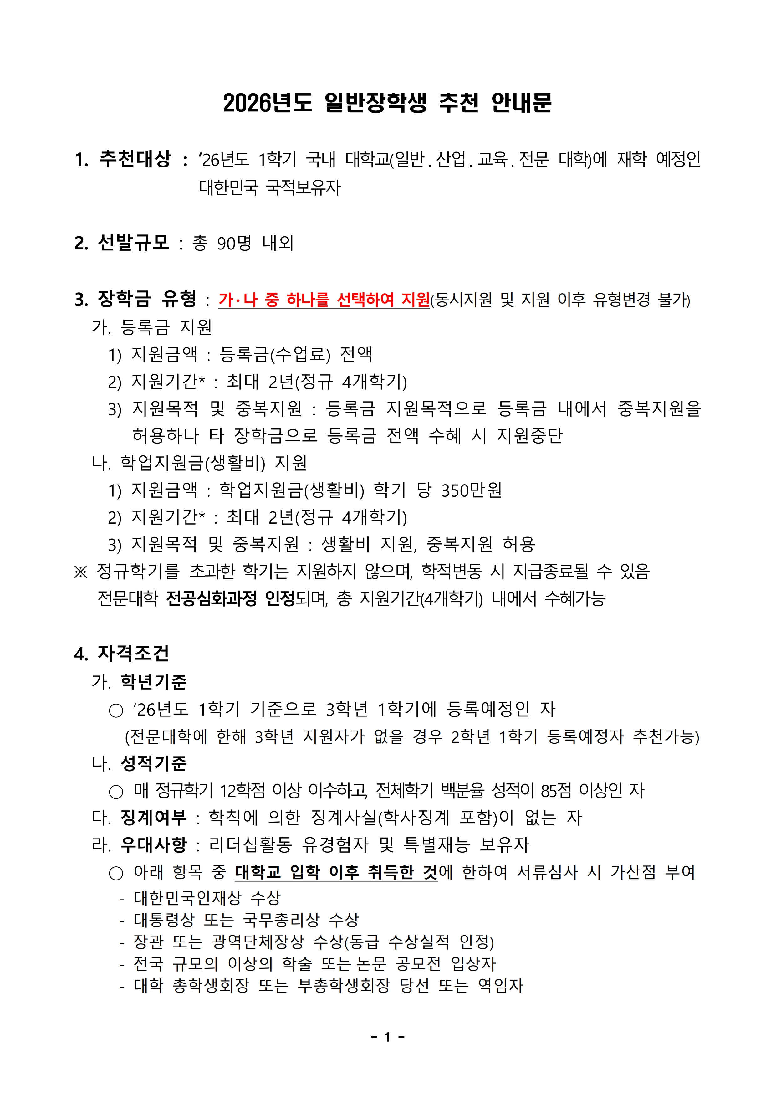 5) ’26학년도 1학기 휴학 예정인 자는 추천 제외