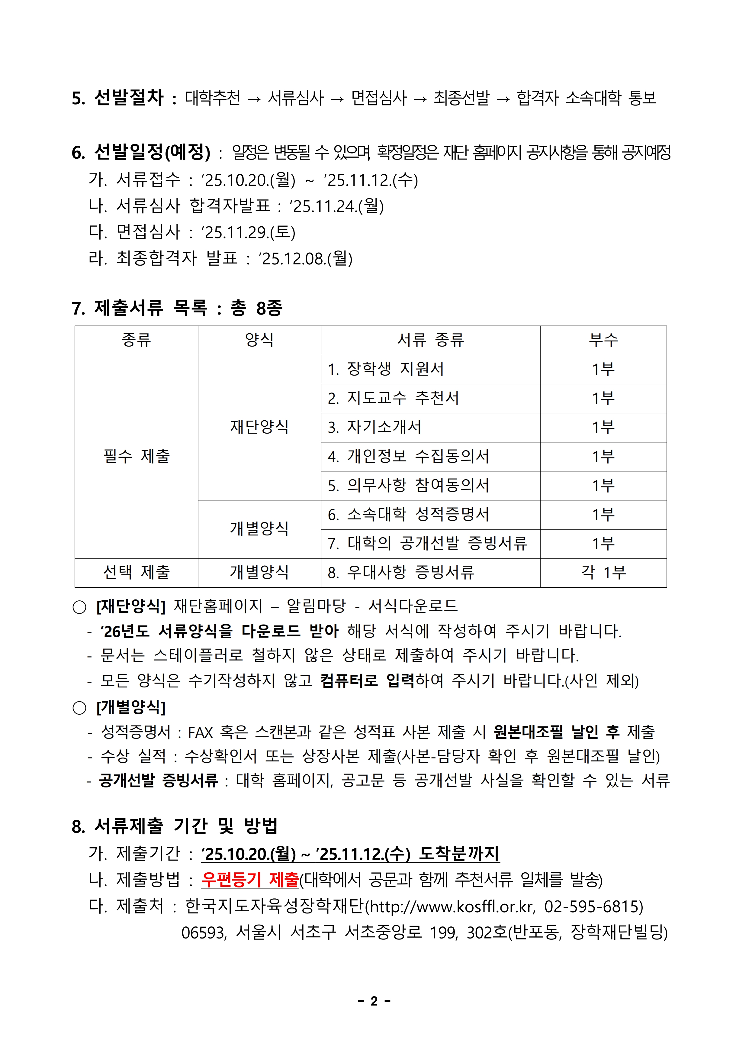 * 아래 항목 중 대학교 입학 이후 취득한 것에 한하여 재단 서류심사 시 가산점 부여